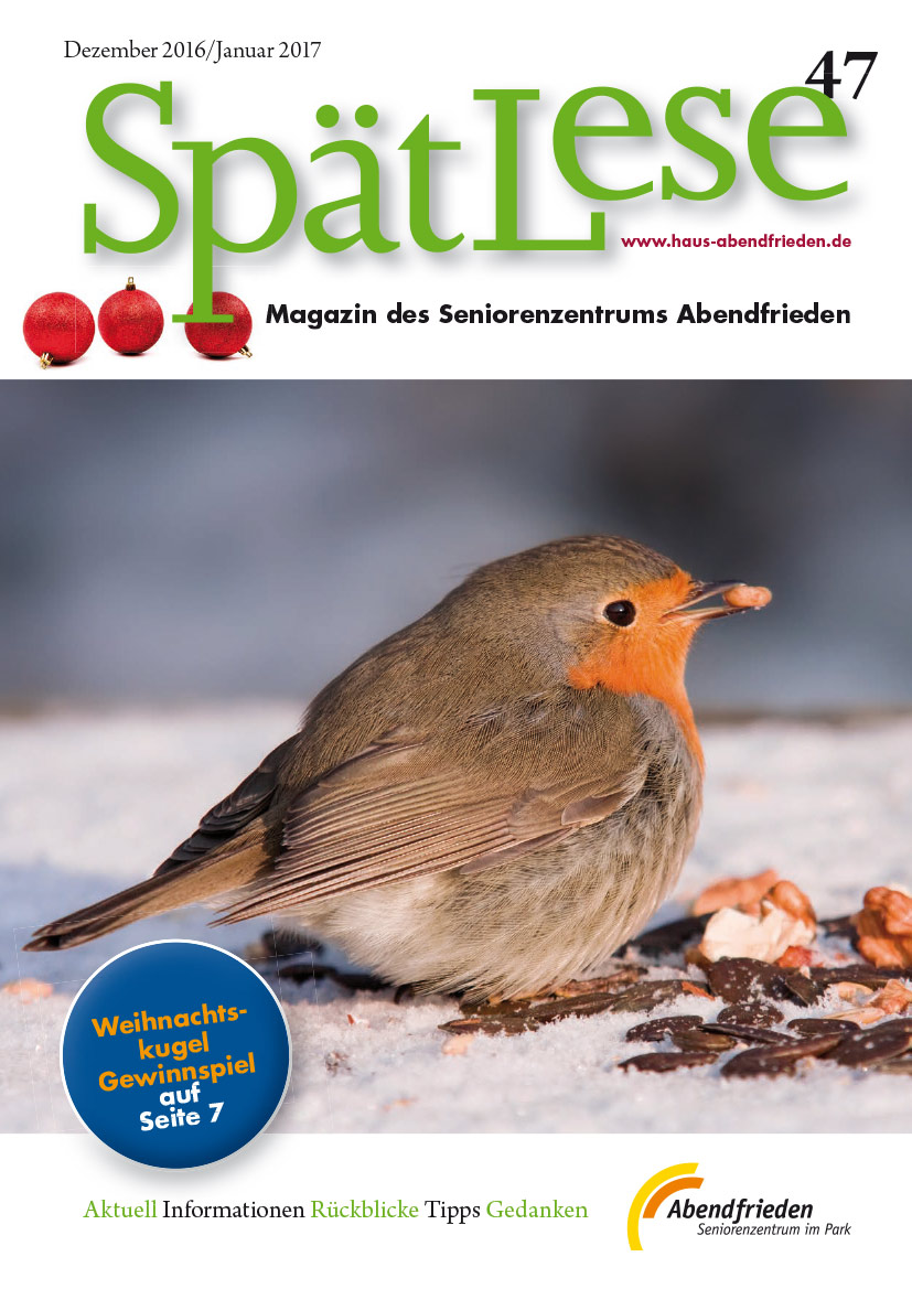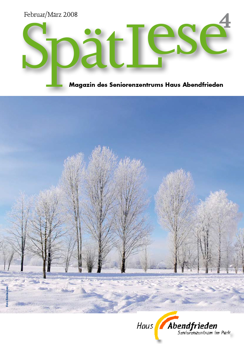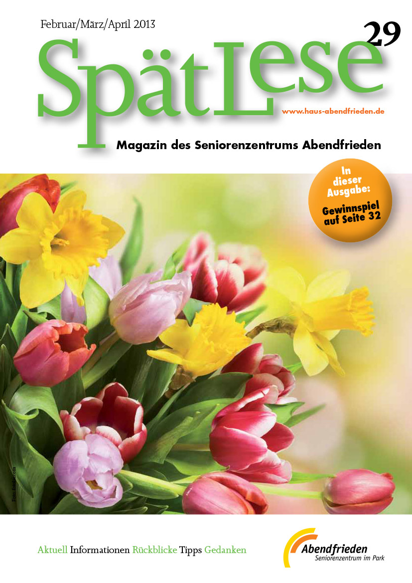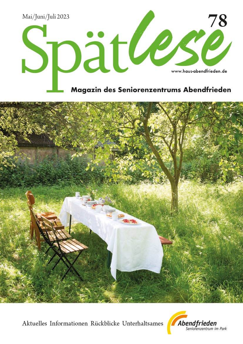 Seit 2007 erscheint das Magazin mit fünf Ausgaben pro Jahr.Tippen Sie auf die Jahreszahl oben, dann auf das Titelbild und blättern Sie durch 18 Jahre Spätlese. 2007 2008 2009 2010 2011 2012 2013 2014 2015 2016 2017 2018 2019 2020 2021 2022 2023 2024